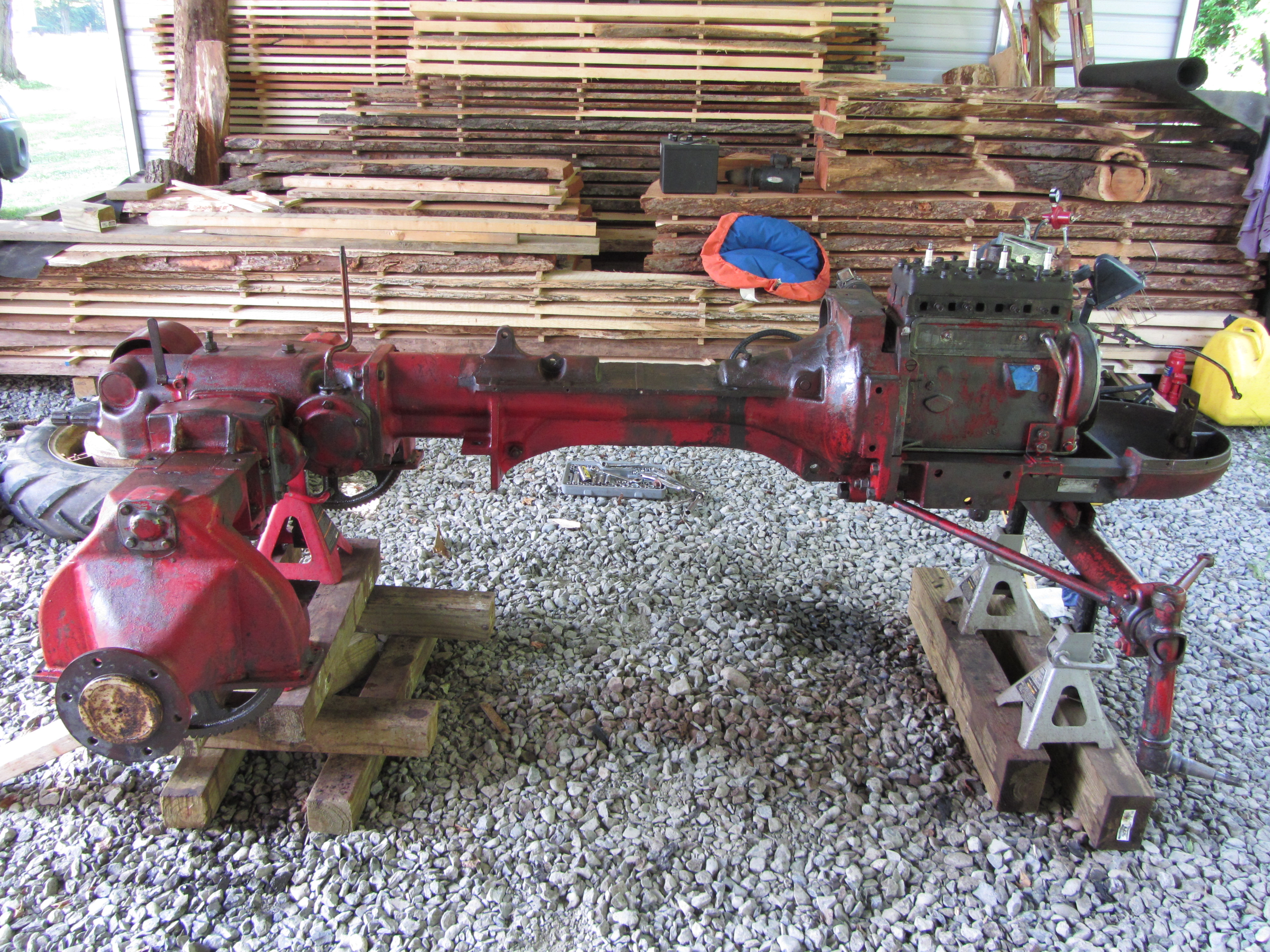 For the restoration (Summer 2011), I took off everything except the engine/heads and the drive train (second photo). Sand blasted the small stuff, rust neutralized the rest. I sprayed it with primer and an automotive version of Massey-Harris red. My next restoration is getting a Woods L59 Belly Mower in working condition and fabricating it onto the Pony.