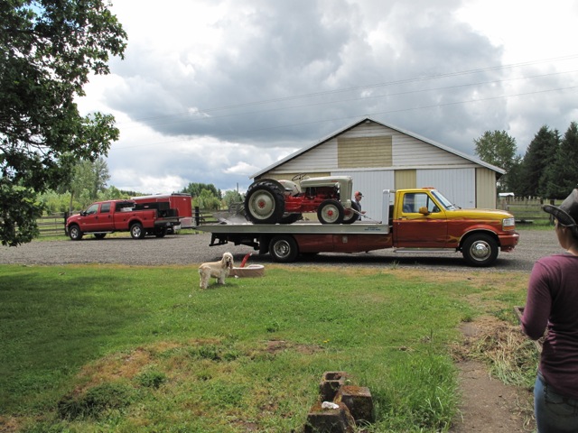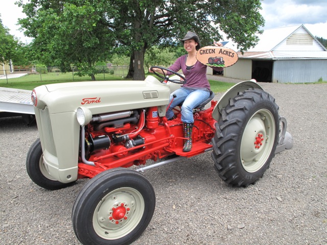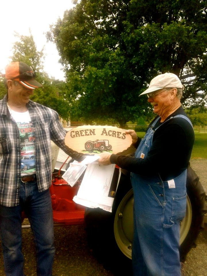 He delivered it on Friday, along with a Green Acres plaque for our door. I took the tractor to Scio yesterday for the Lamb and Wool Festival that runs all weekend. The weekend is a big, big deal here and includes an antique and working tractor show. Our tractor took first place for having traveled the greatest distance under it own power, 8.2 miles, First in it’s class and Best in Show Overall. We cleaned up.