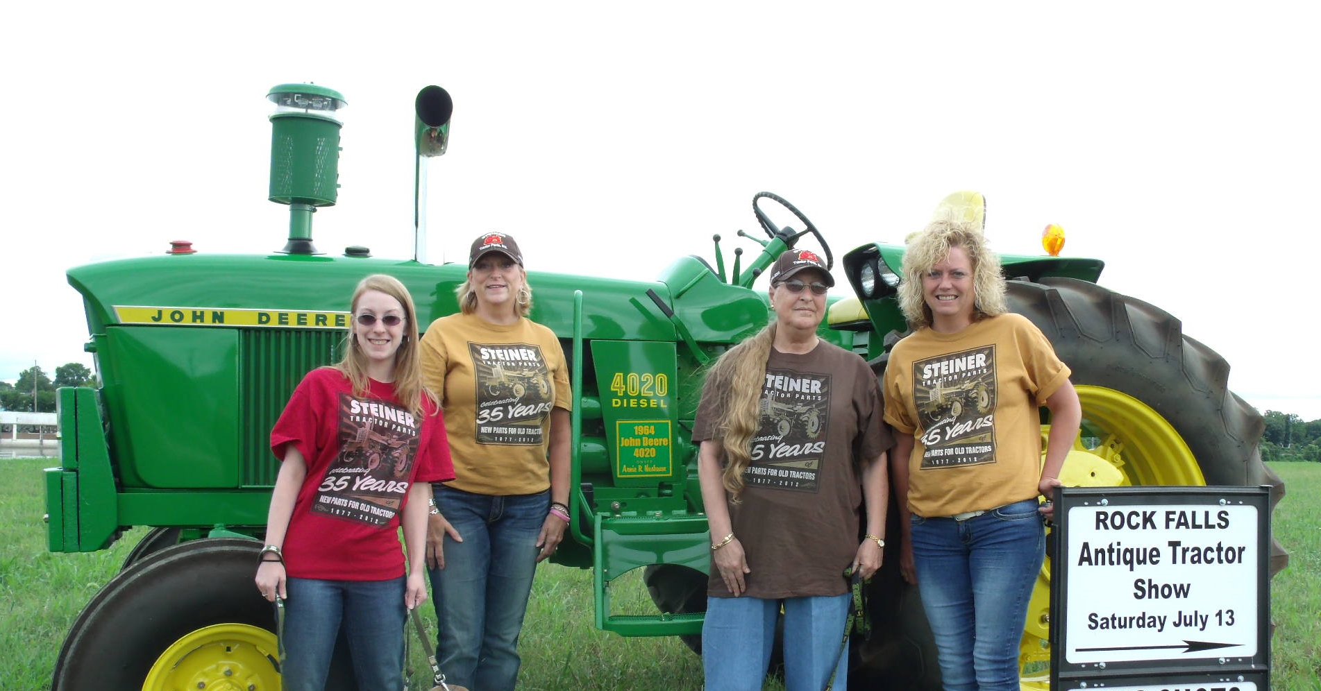 We received these great pictures from Terry Hadaway of his ‘Steiner Girls’. Terry and the ladies were handing out Steiner catalogs and giveaways at the Rock Falls Antique Tractor and Engine Show Cookout on Saturday July 13th in Rock Falls Illinois. Nice job everyone!