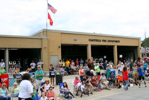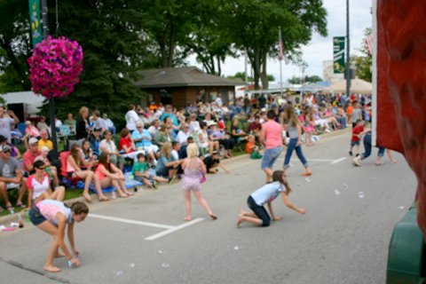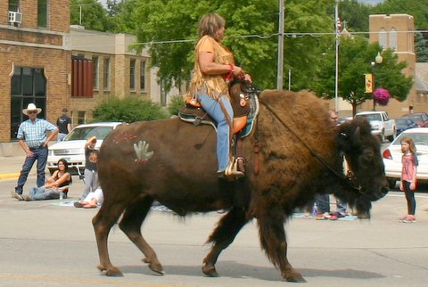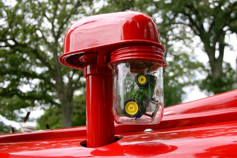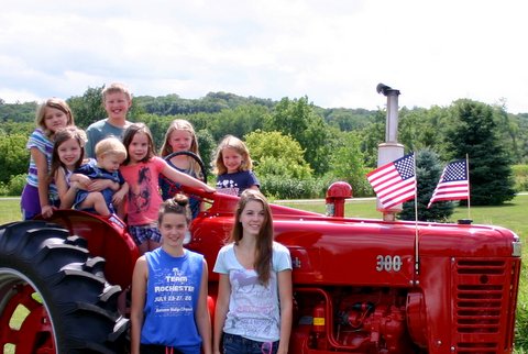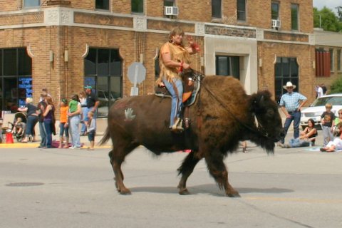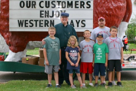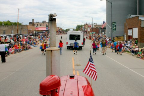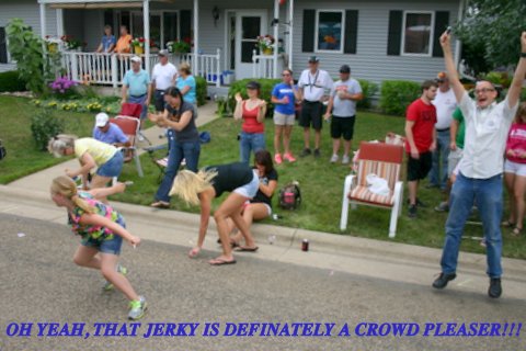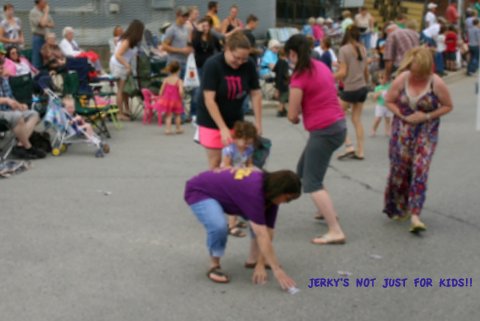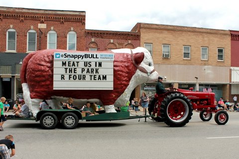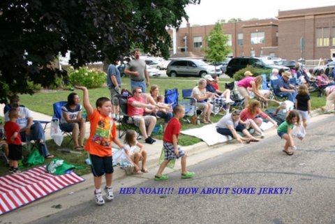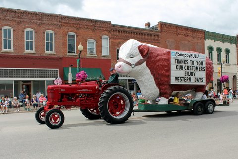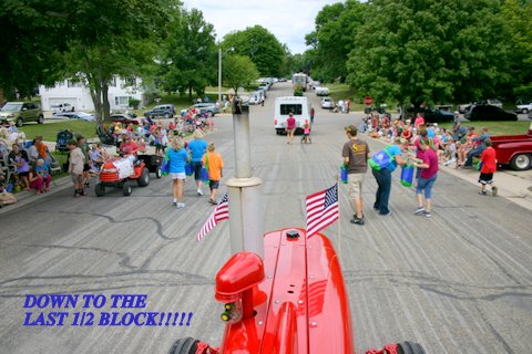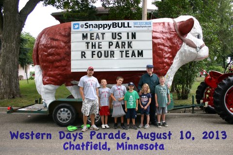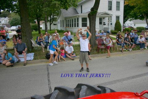 Hard to believe it, but we misplaced our one and only key with only two weeks till the parade!! Not only was the key missing, but a minor hydraulic leak had to be repaired and we needed to get this sweetheart started to determine exactly where the leak was coming from. However, no key!! Then the good folks from Steiner Tractor came to our rescue with a quick key replacement!!! Steiner saved the day & our trusty old Farmall 300 was more than up to pulling the big red/white Hereford bull through the Chatfield, Minnesota Western Days Parade. Hundreds of small sticks of individually wrapped jerky in mini-zip locked bags are thrown out to the crowd along the parade route. Needless to say the jerky is a real crowd pleaser by young & old!!!!!