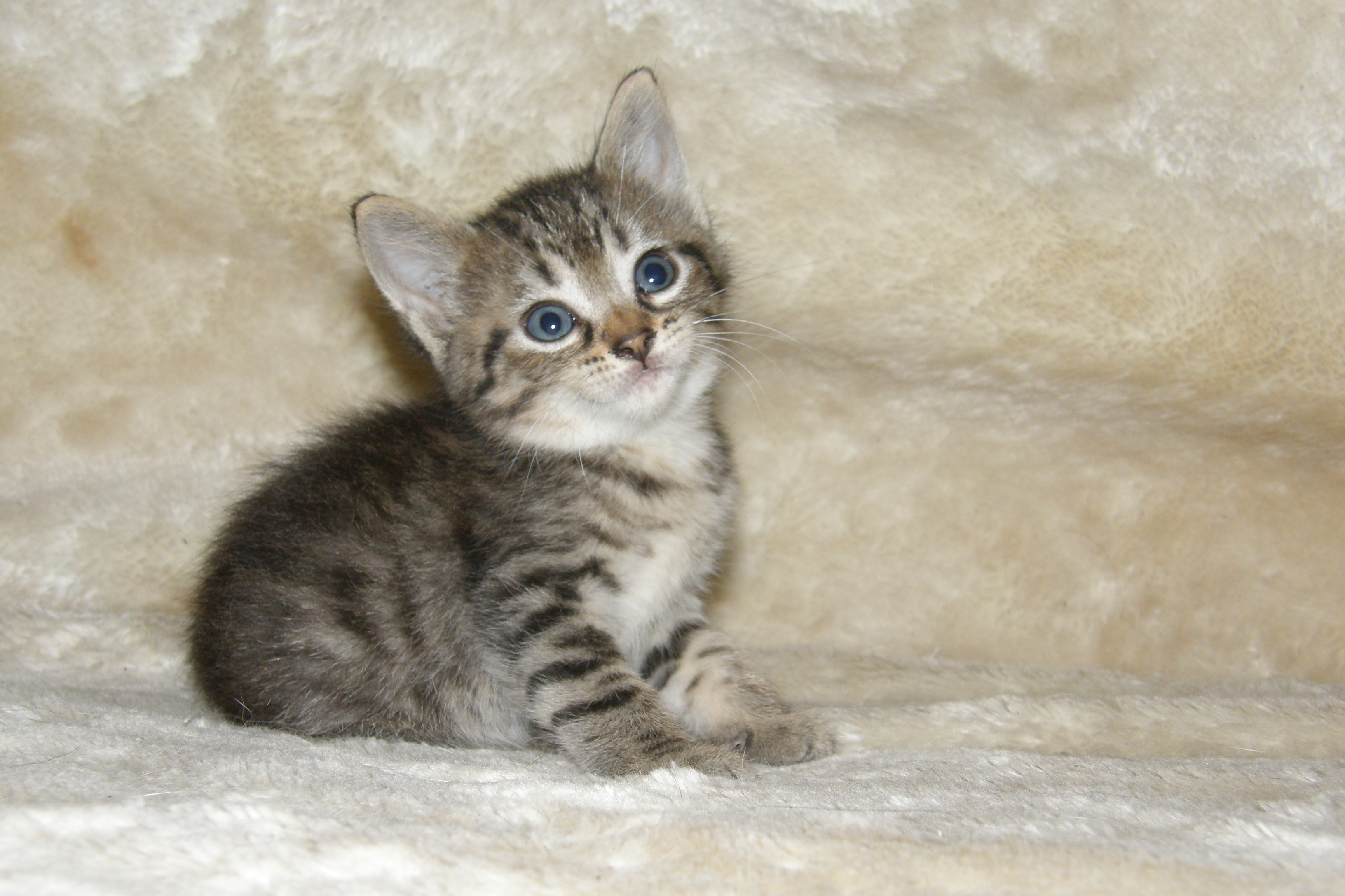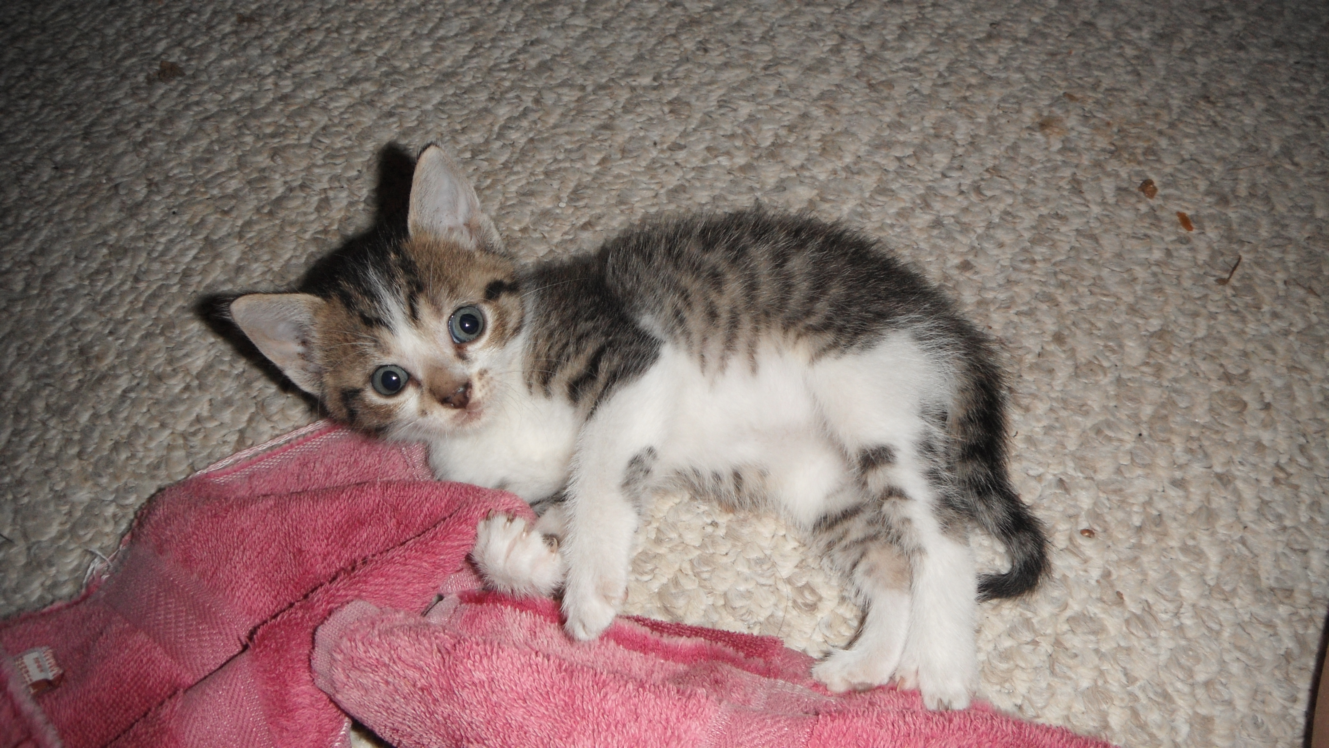 These kittens were born July 17th, so they are 5 weeks old. They eat, play and sleep!