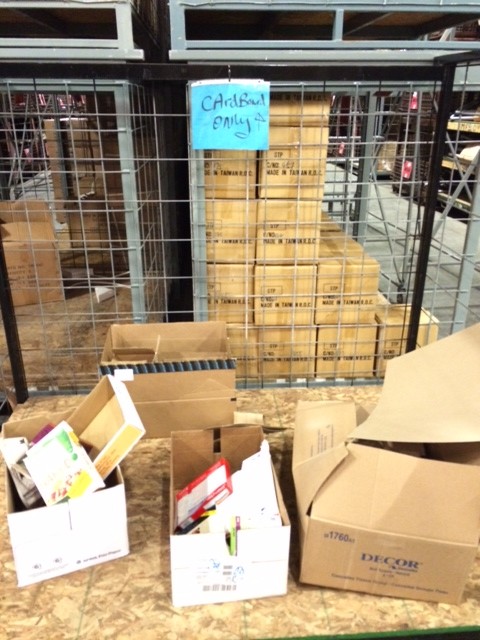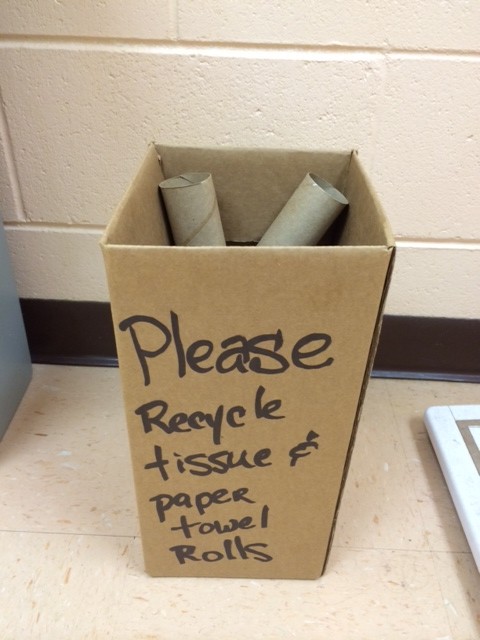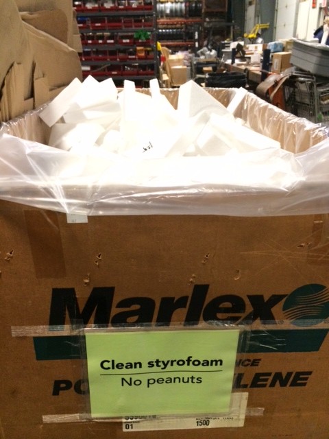 Some of the things we do are shown in pictures below and here are a few more. We keep a box under each desk for used paper which is shredded on a regular basis, a box under our table in the kitchen for employees to gather used magazines and catalogs. We offer a water cooler for employees who choose not to use bottled water. Toner cartridges are collected and sent to a center or taken to a nearby Staples. Fluorescent bulbs are collected and disposed of properly. Plastic bags are collected for reuse or recycling. The Shiawassee Mental Health group delivers bundled unsold newspapers that we use for our packaging for a donation made by Steiners. And the largest bin would be a roll off box that is used for parts and other large metal items.