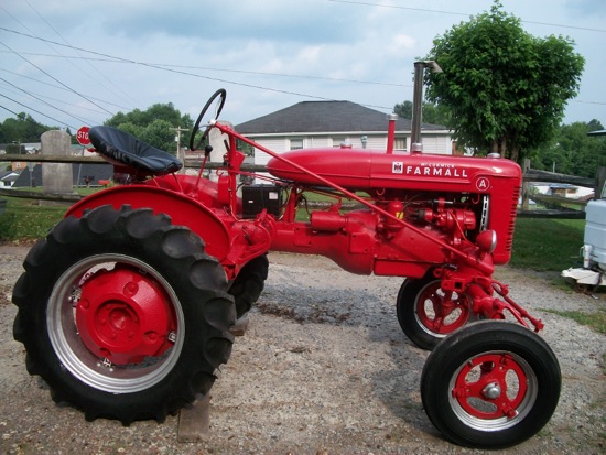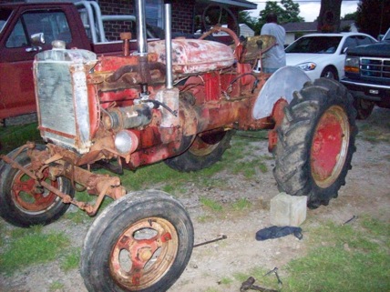 This is a 1945 Farmall A. I had never messed with antique tractors before and I had to quit smoking due to some heart troubles so a friend talked me in to restoring an antique tractor. We went and looked at this tractor my friend said that it wasn’t stuck and it would run, the rest of the parts came in a box it had nothing on the motor but the distributor I was a little worried because I had never worked on a tractor before. Working every day and three weeks later I had it running and won a 1st place trophy with it, I was so proud !