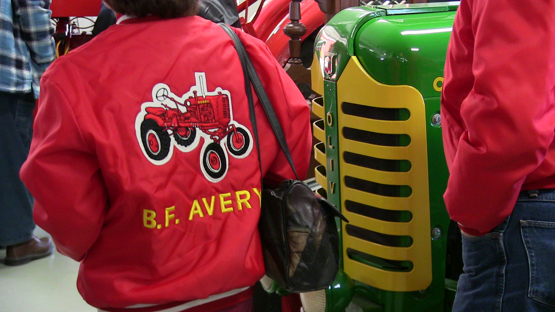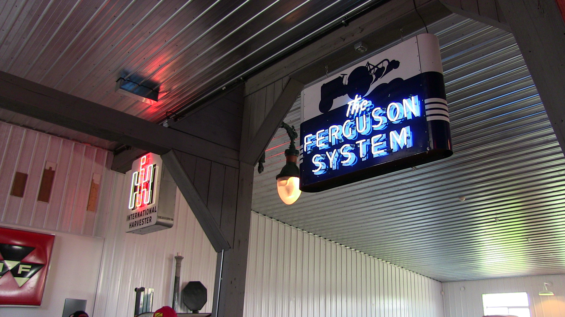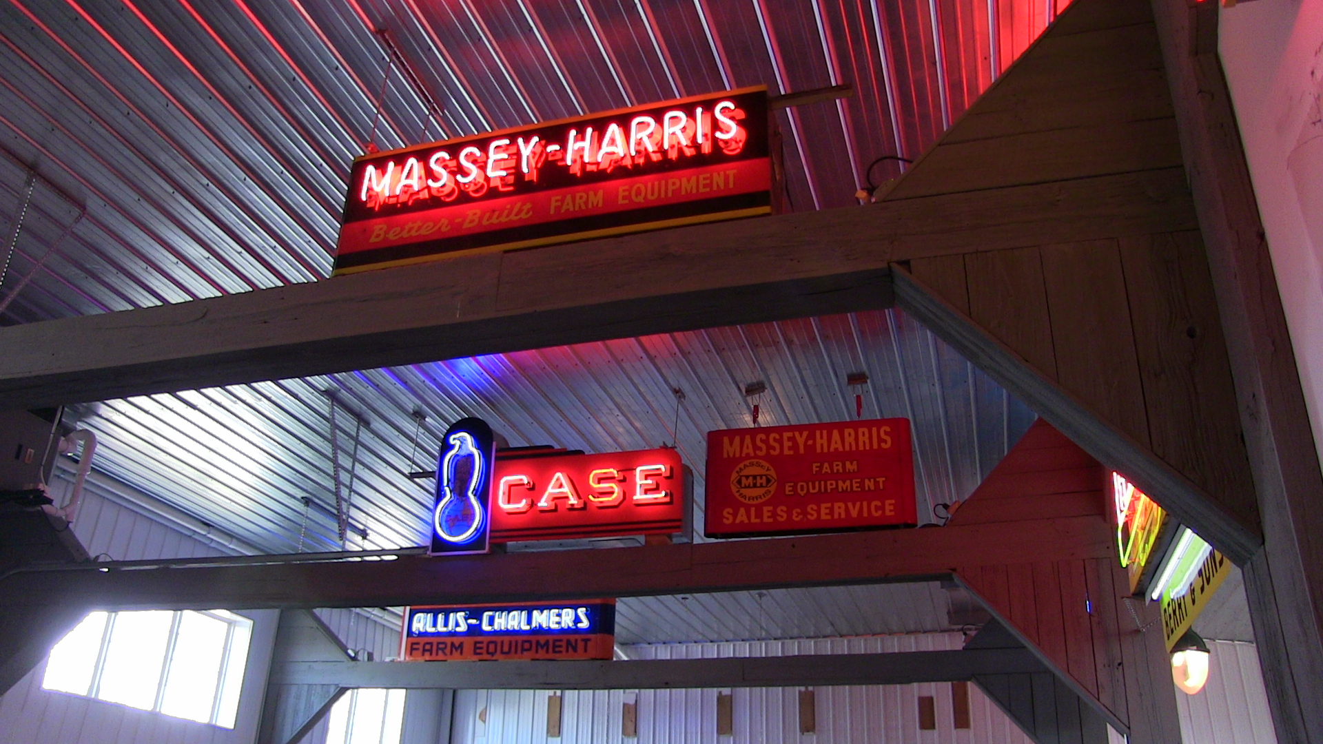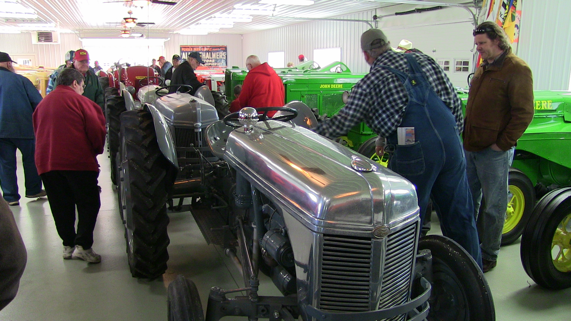 Last Friday the BF Avery Collectors and Associates gathered in Davison Michigan at the Best Western for their Winter meeting and a day of tractor fun. After the morning meeting the group was picked up in a bus furnished by Steiner Tractor Parts with a first stop in Hadley Michigan at Chuck Schneider’s. Chuck owns one of the biggest Orchard tractor collections in the country, and many neon signs and other collectibles. It was a rare privilege to be invited to see this private collection and hear Chuck’s stories about how he came across these restored tractors.