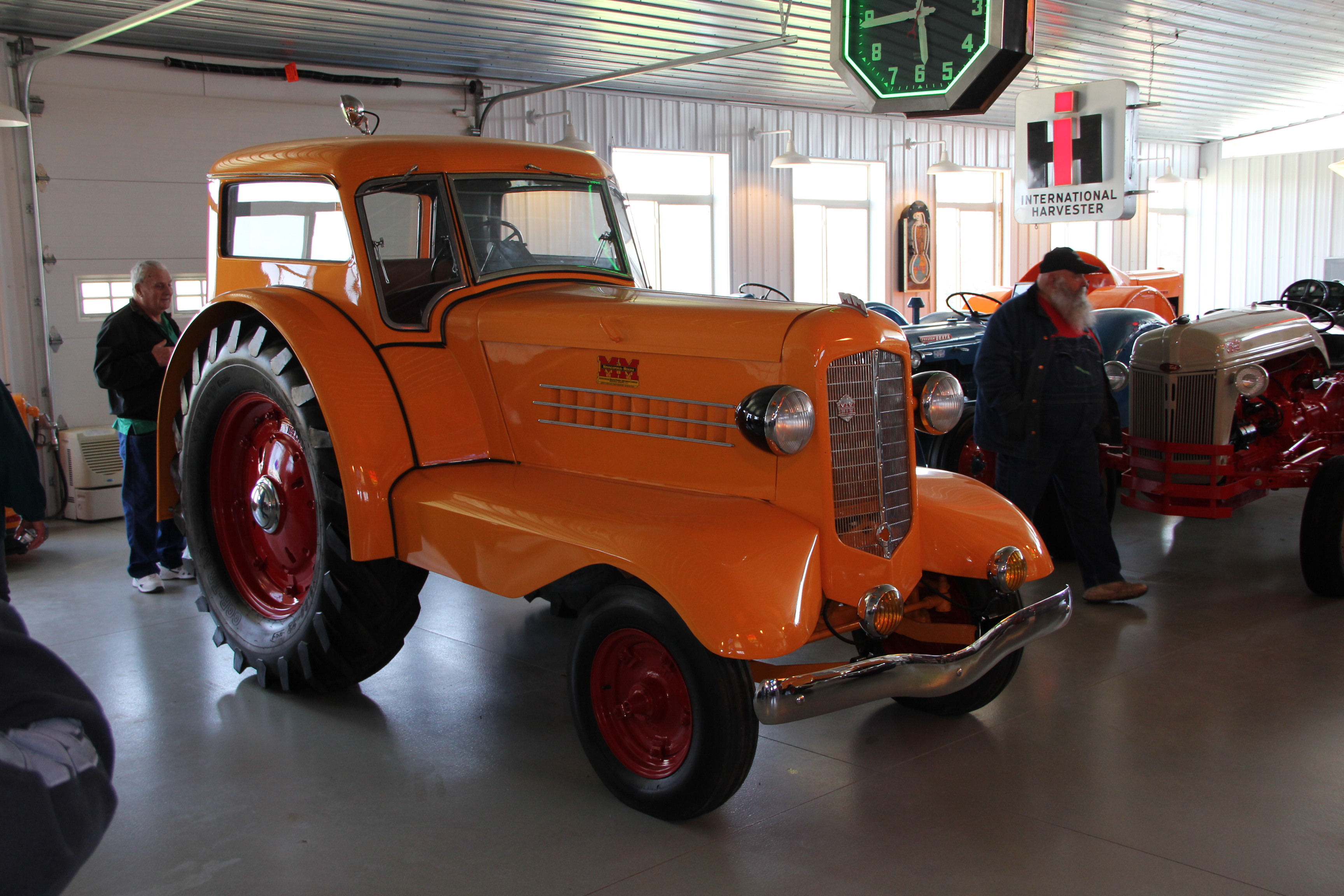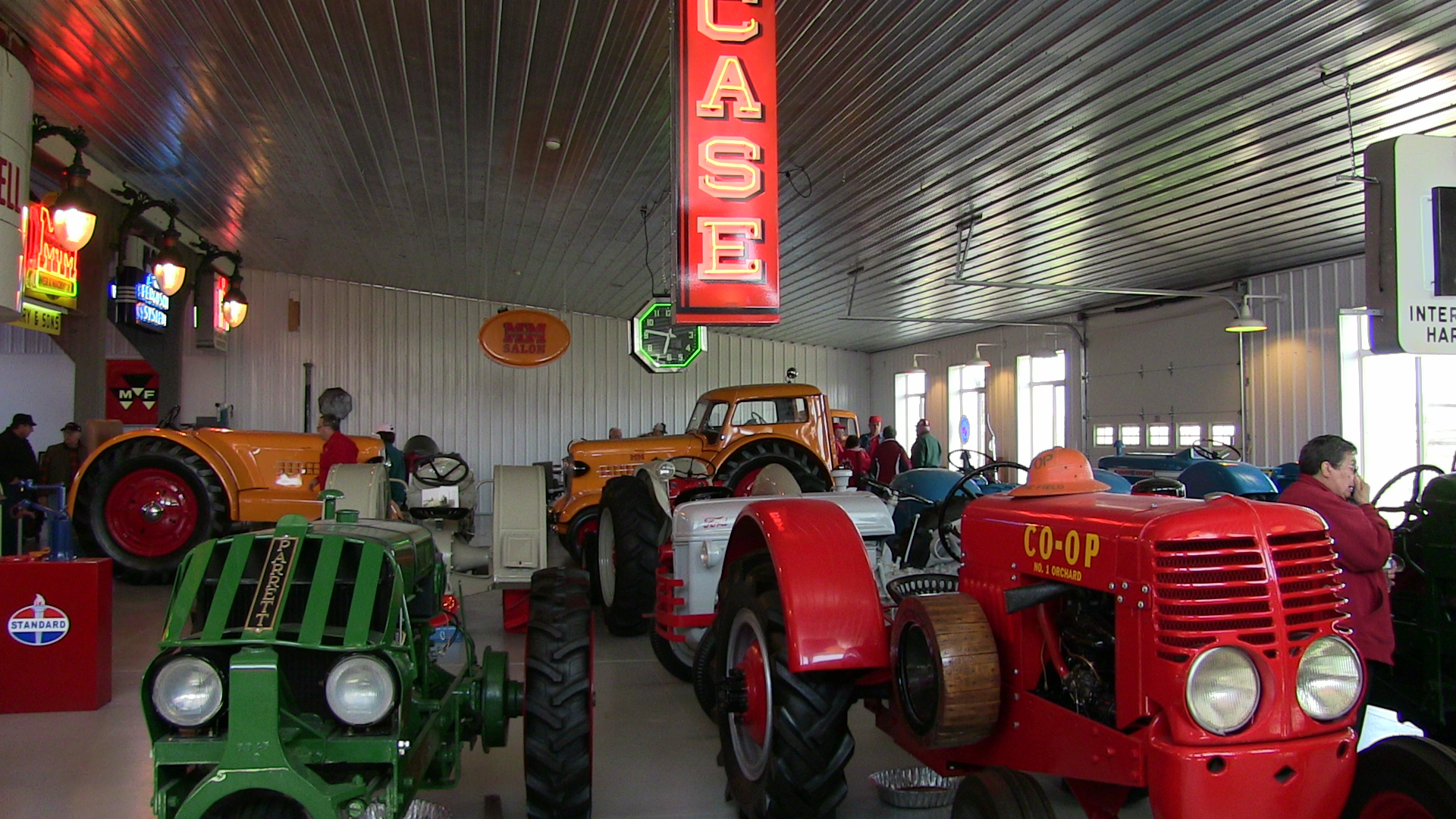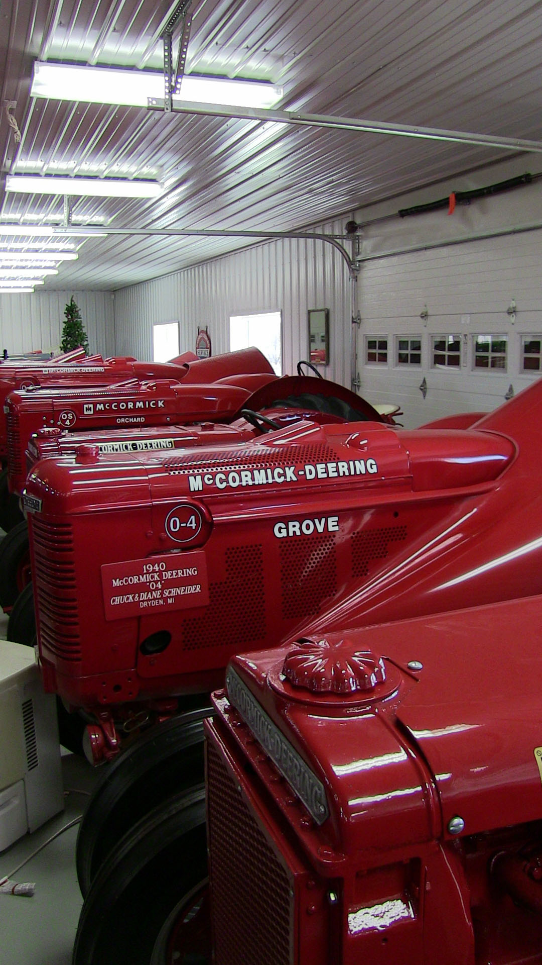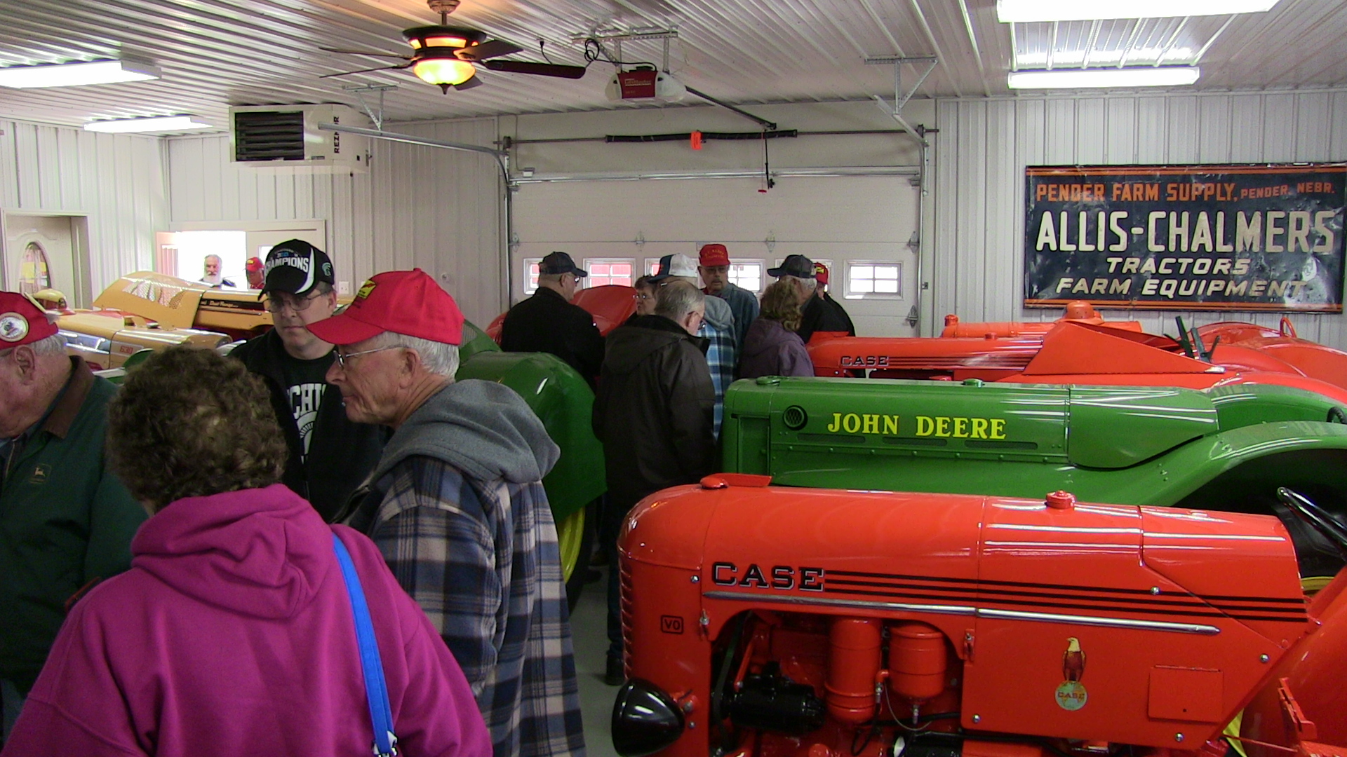 Last Friday the BF Avery Collectors and Associates gathered in Davison Michigan at the Best Western for their Winter meeting and a day of tractor fun. After the morning meeting the group was picked up in a bus furnished by Steiner Tractor Parts with a first stop in Hadley Michigan at Chuck Schneider’s. Chuck owns one of the biggest Orchard tractor collections in the country, and many neon signs and other collectibles. It was a rare privilege to be invited to see this private collection and hear Chuck’s stories about how he came across these restored tractors.