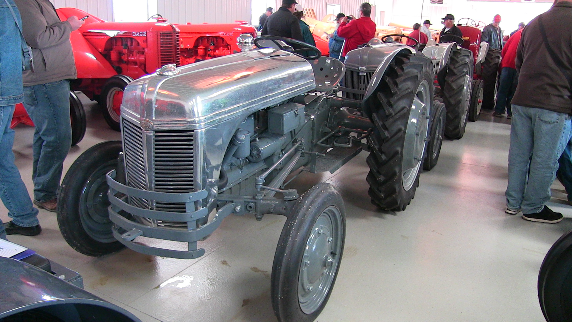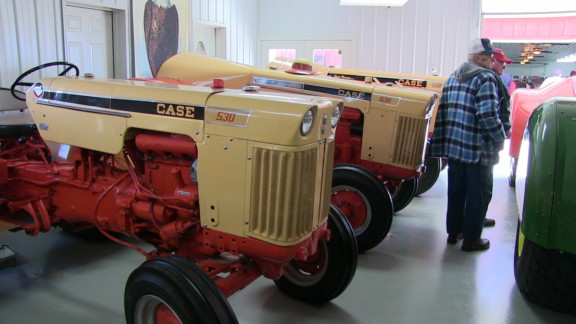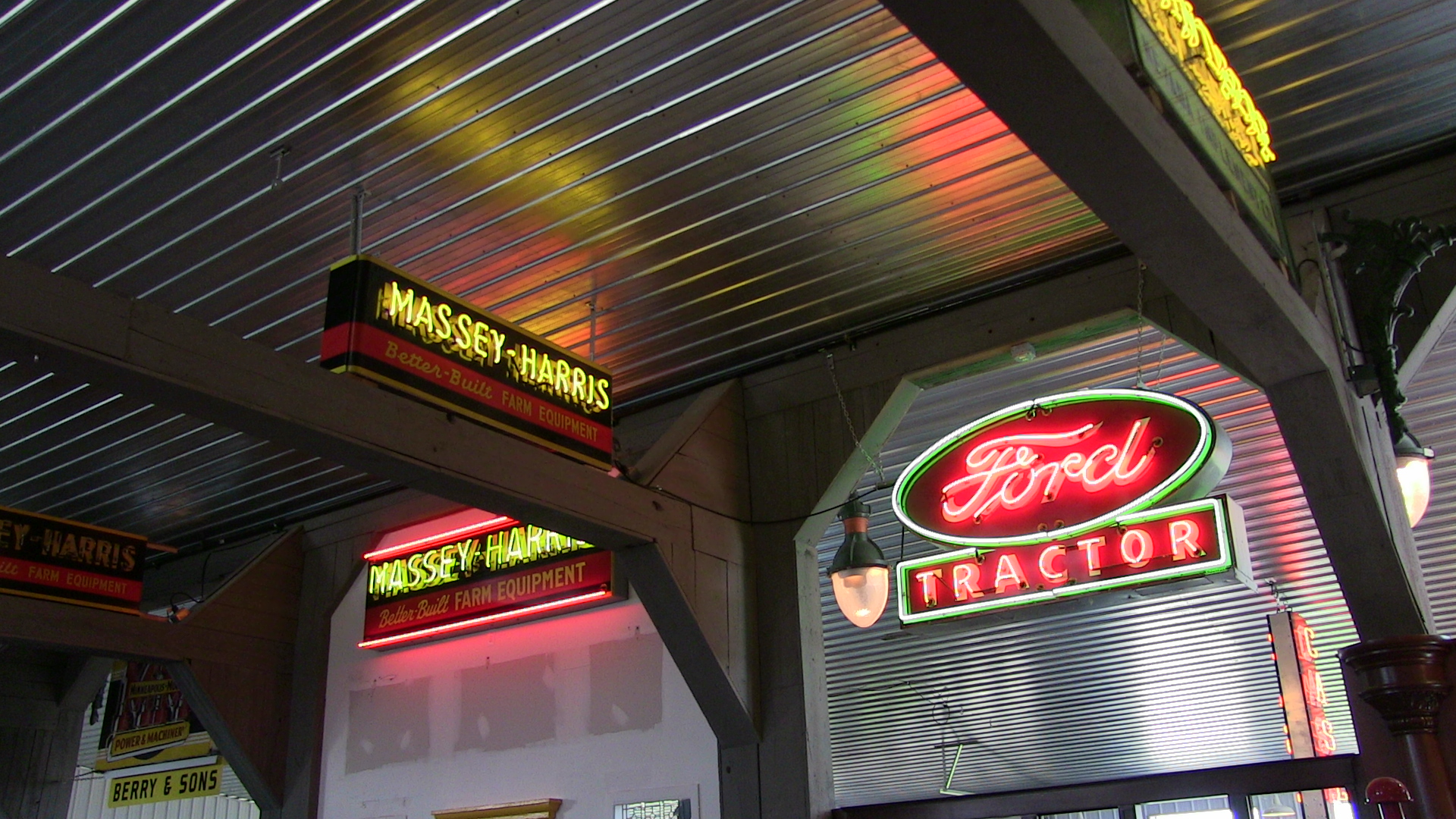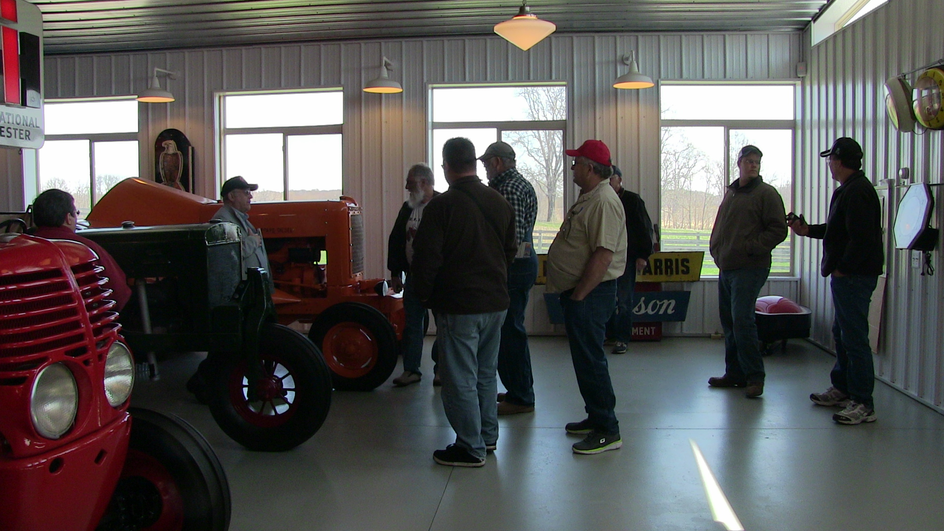 Last Friday the BF Avery Collectors and Associates gathered in Davison Michigan at the Best Western for their Winter meeting and a day of tractor fun. After the morning meeting the group was picked up in a bus furnished by Steiner Tractor Parts with a first stop in Hadley Michigan at Chuck Schneider’s. Chuck owns one of the biggest Orchard tractor collections in the country, and many neon signs and other collectibles. It was a rare privilege to be invited to see this private collection and hear Chuck’s stories about how he came across these restored tractors.