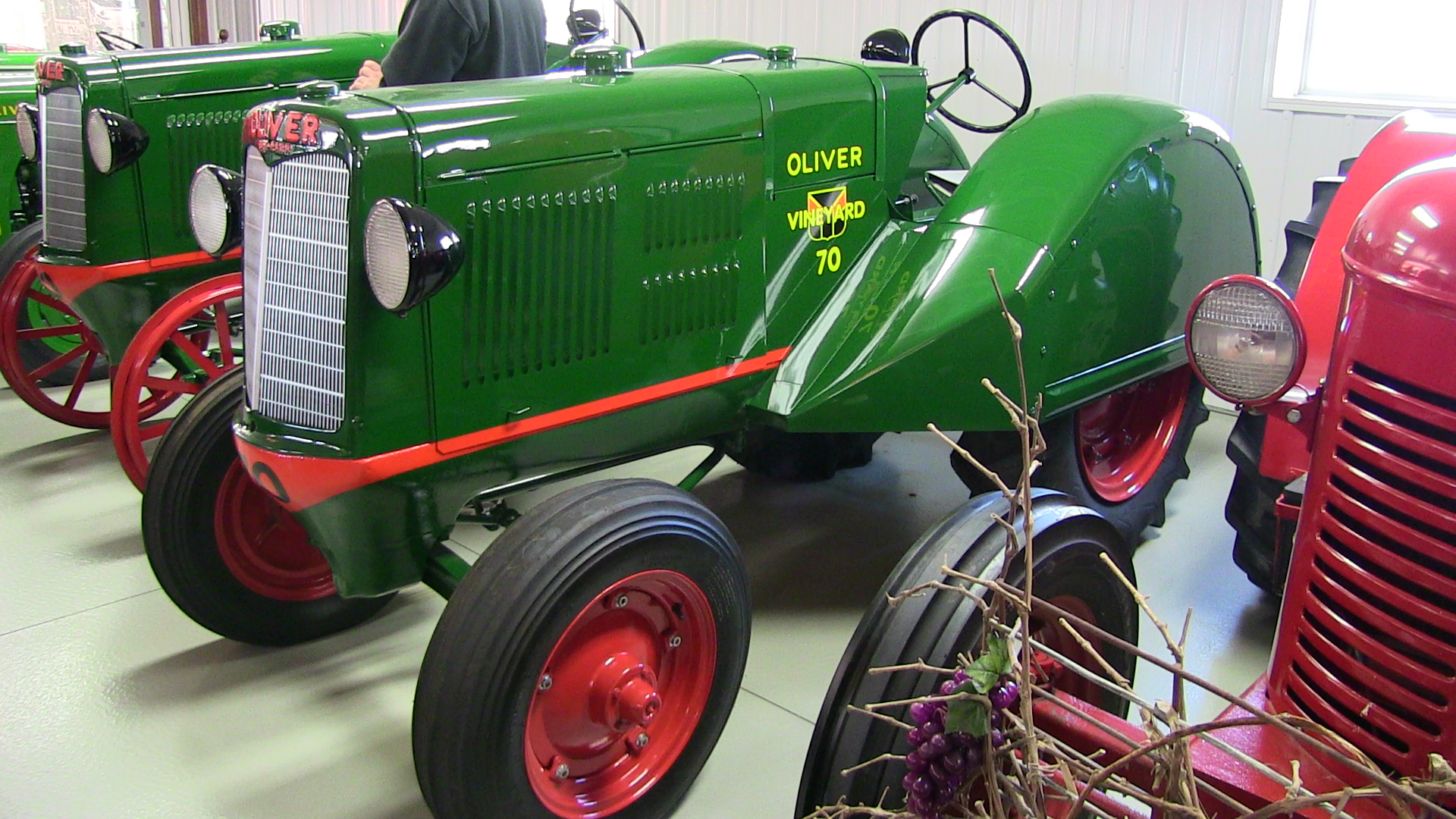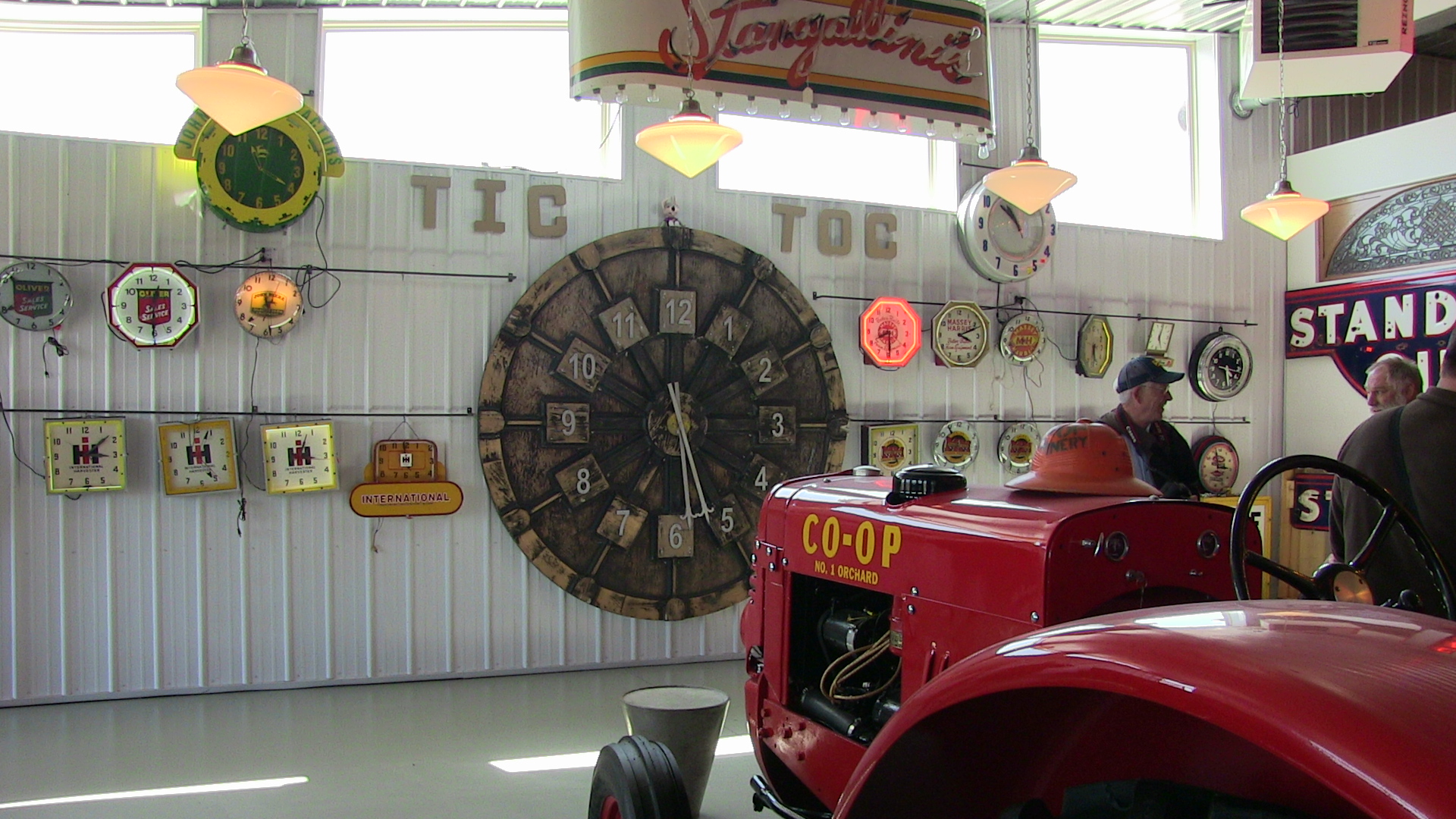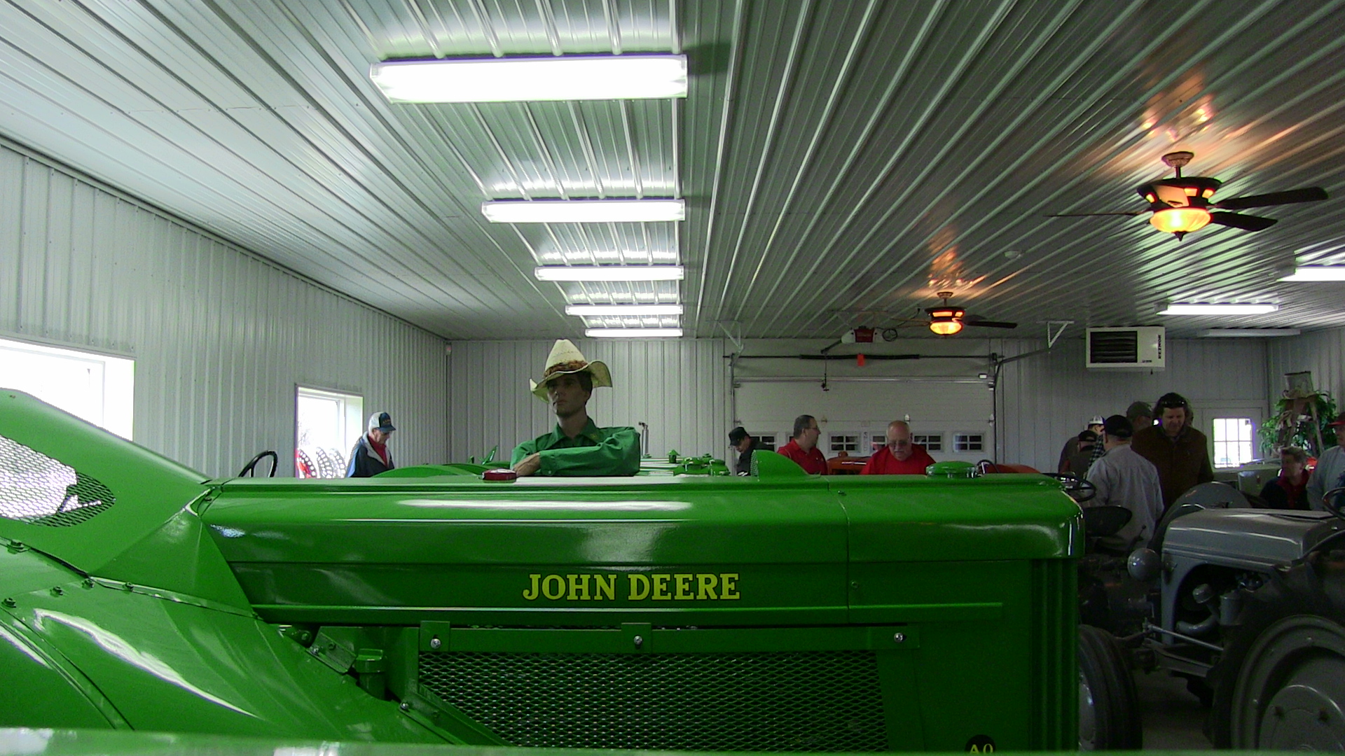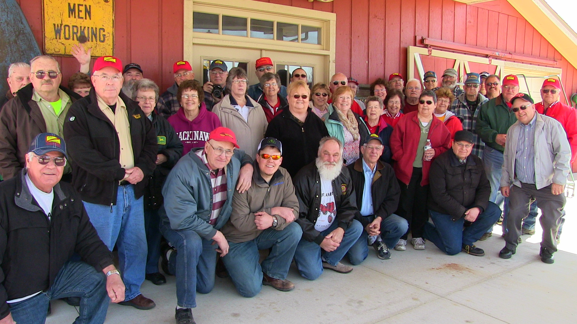 Last Friday the BF Avery Collectors and Associates gathered in Davison Michigan at the Best Western for their Winter meeting and a day of tractor fun. After the morning meeting the group was picked up in a bus furnished by Steiner Tractor Parts with a first stop in Hadley Michigan at Chuck Schneider’s. Chuck owns one of the biggest Orchard tractor collections in the country, and many neon signs and other collectibles. It was a rare privilege to be invited to see this private collection and hear Chuck’s stories about how he came across these restored tractors.