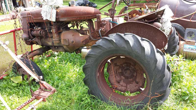 This 1941 Farmall A was purchased by my Grandfather, John Molitoris, new in 1941 on his farm in Sugerloaf, Pennsylvania. When I lived there I remember using it many times. The tractor was used regularly by my uncles until 2000 when the engine developed a knocking sound. It was parked by the barn and covered, with plans to repair it. Time went by and the cover deteriorated leaving it exposed to the elements. After 15 years the Pennsylvania winters had taken their toll on it.