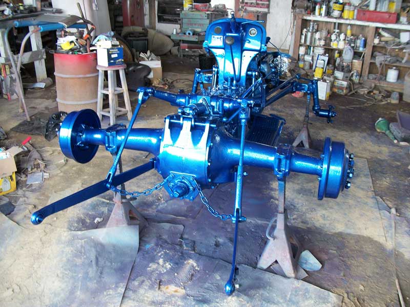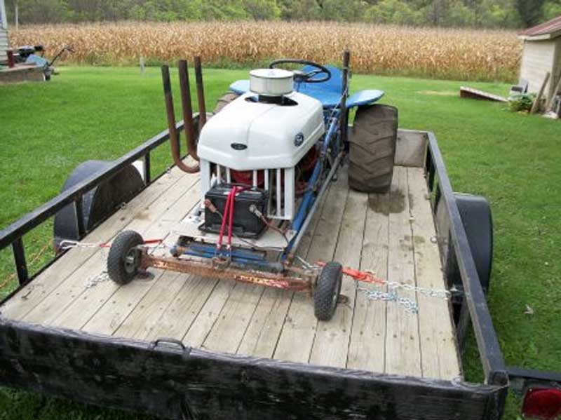 Another project below. This little pulling tractor has a 9″ Ford rear end, they use them in stock cars as they are darn near indestructible. Skid steer tires in the back, donut tires in the front and best of all it is garnished with a 1963 195 cid Pontiac slant four engine. This little one looks like a chopped 8N Ford.