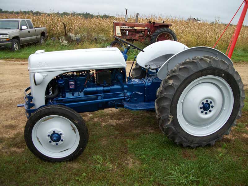 I bought this Ford tractor for $800 in the Fall of 2015. It came with tire chains, a PTO belt pully, a rear blade and a 3 point boom, what a deal. It ran but needed restoring, just got done on October 8th, Saturday morning at 8:30 am. I drove it in a parade at noon that day and got 1st place.