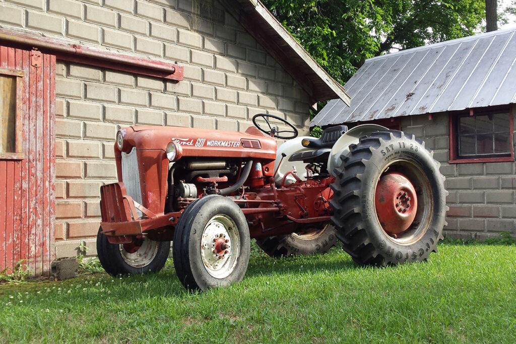 Ford Workmaster 641 by dairy barn.