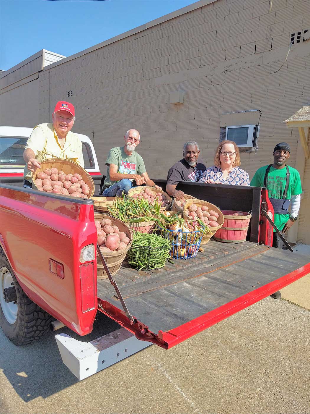 Delivering veggies summer of 2023 to the food bank in my red 1971 GMC pickup.