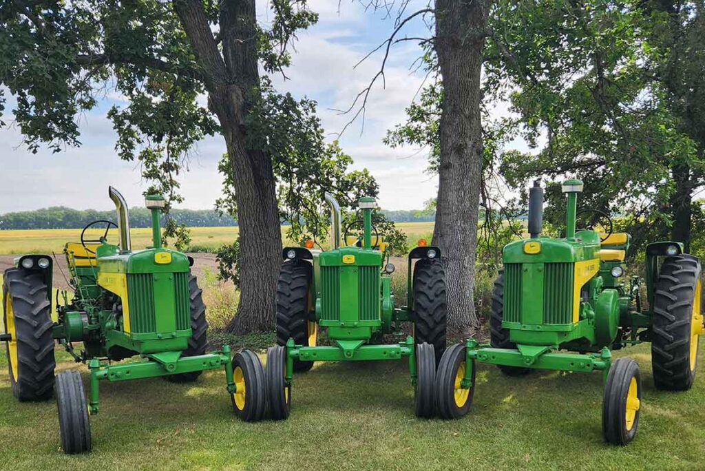 With the help of some new parts, decals etc from Steiner Tractor Parts, and some hard work, it has been returned to its earlier glory. Now it has joined its 2-cylinder John Deere brothers; a John Deere 630 and John Deere 720D as members of our family. It still gets out and let’s it’s owners play in the dirt occasionally as well as do some parade duty.