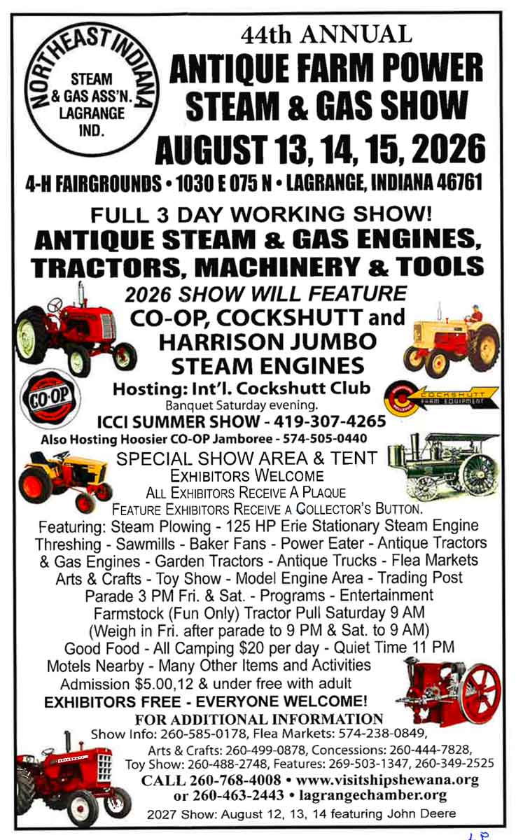 IN – Northeast Indiana Antique Farm Power, Steam & Gas Show